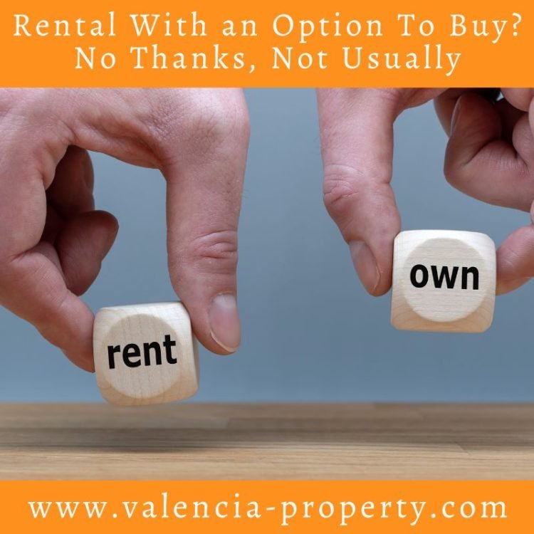 b) The Cost: Rental usually costs more on an option contract because the contract means you are partially buying into the property and also the tenant may want to offset the final amount to a greater extent. A property that can be rented for 1000 Euros may well cost 1500 Euros per month on an option contract so that the final amount is reduced by offsetting. If you are happy to overpay for a rental then fine. However it cannot be recommended as a great way to spend your money.