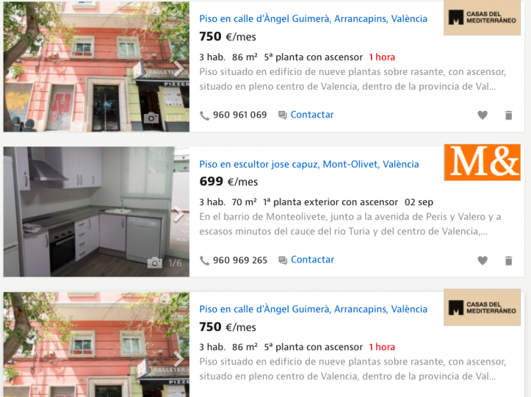 In comparison, on the largest property portal in Spain, Idealista, there are just 2738 properties listed for long term rent in Valencia city and many of those are repeat listings where various agents have the listing and the owner may well be advertising too. See below for an example, same advertiser, same property twice.