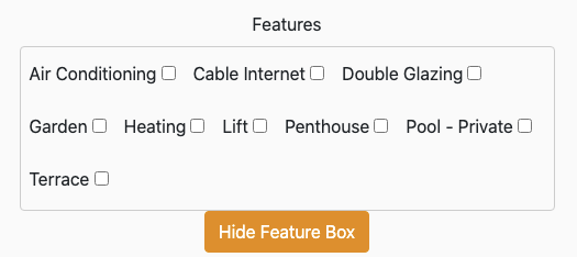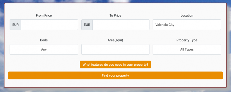 Therefore the basics of price range, location, bedrooms, size and property type are included but you can just search by price or price + location for example. It's not necessary to fill everything in. The features are also limited in the search in the dropdown box so that you can search by your must haves and these are the most common requests.