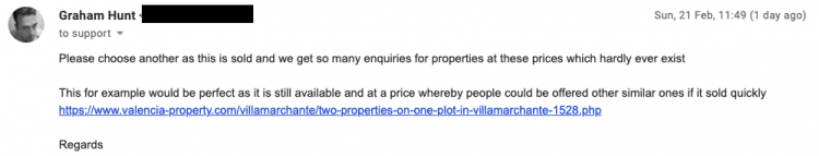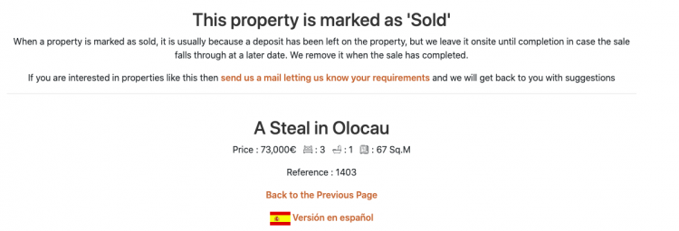 We now have to answer more than thirty enquiries saying to each one "sorry but the property is sold, as stated on our site!" And, no, we don't have another twenty properties we can suggest at the price of the one they featured.