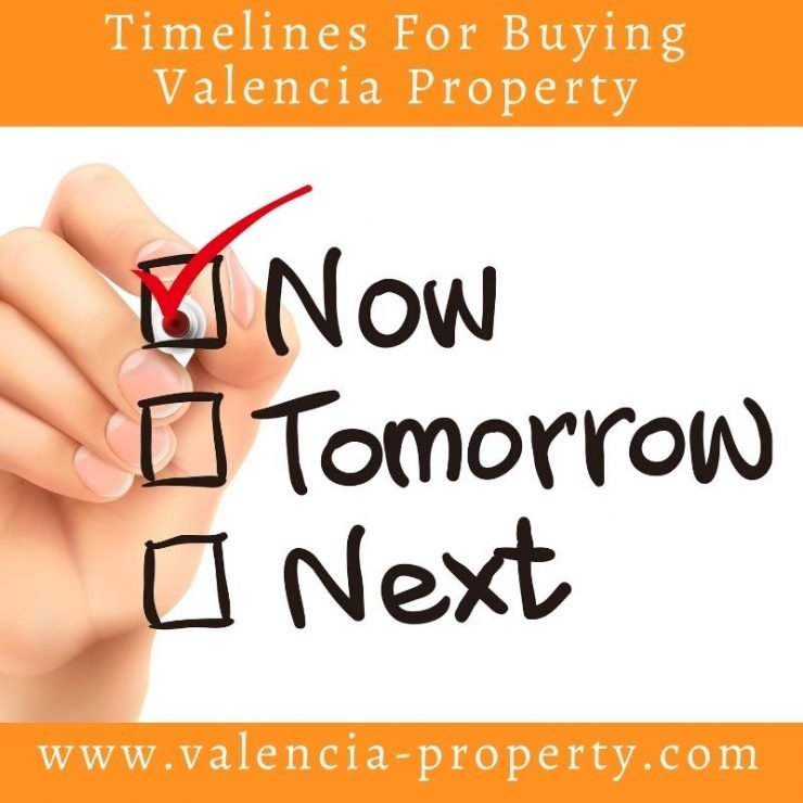 Those of you who listen to the podcast will have heard about the timelines you need for buying Valencia Property back in episode one (You can get it here and while there listen to our other episodes and subscribe). However, we know that there are some people who prefer reading to listening and therefore today we are going into a deep dive about the timelines you should be thinking about when looking to buy property in Valencia. Now this is an overview and for some people the timeline will change but as a general rule of thumb these are the stages and actions you should be thinking about.