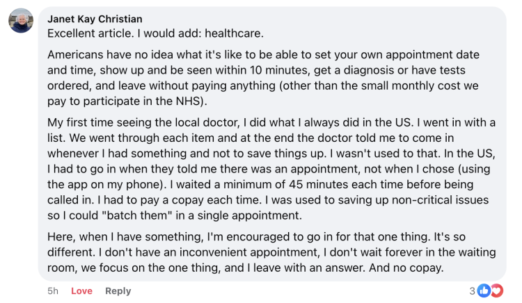We have been asking for what you would add to people already here and we got this excellent point. Yeah, healthcare is so so different.