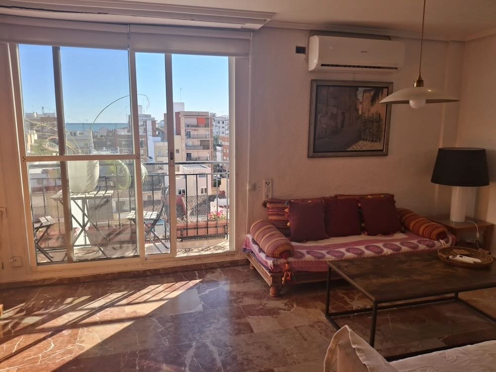 142m² on the 7th floor (with a lift, naturally). Three bedrooms. Direct sea views. Nobody above you. Nobody overlooking you. Just light, space, and that cooling Mediterranean breeze that makes Valencia summers actually bearable.