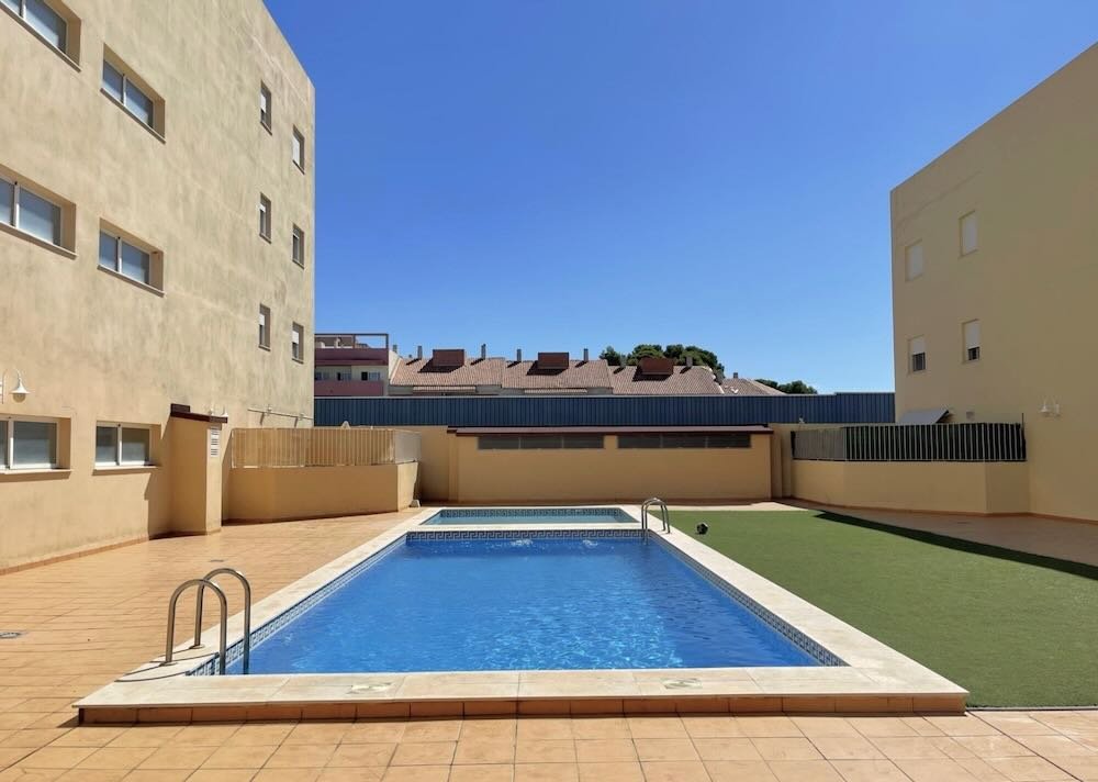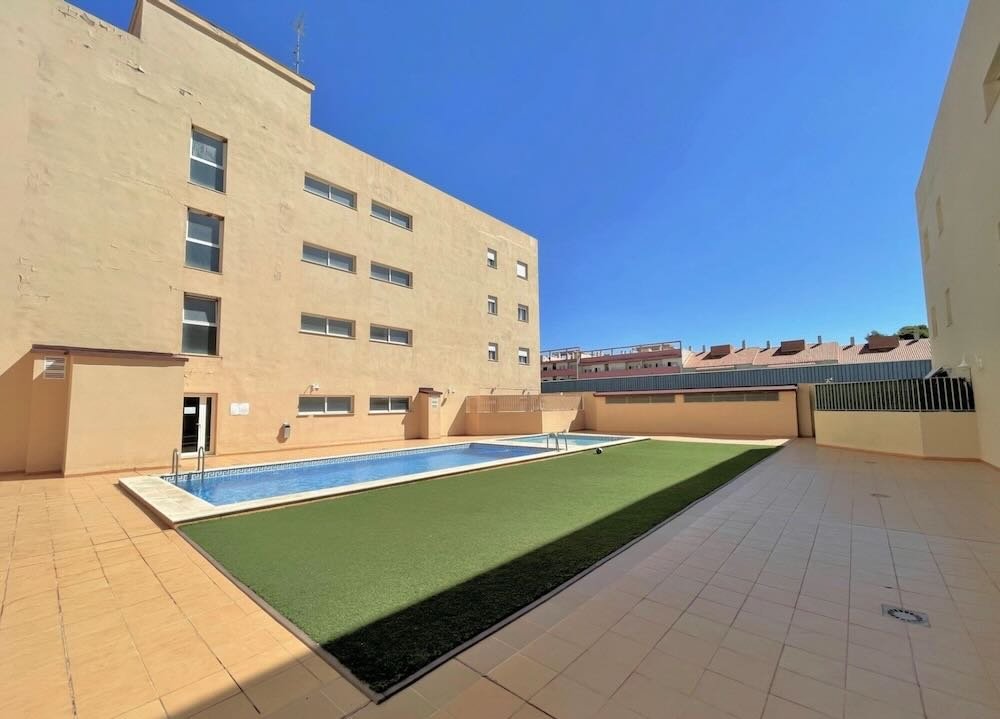 Right, on to the good stuff. This is a top floor apartment with over 100m² of terraces in total, a parking space and a storage room, in a residential complex with a communal pool. Built in 2008 (There's that year again), the apartment itself is 84m², laid out over two bedrooms and two bathrooms (one en-suite), a kitchen with a utility gallery and a generous living and dining room of nearly 30m² that opens directly onto a lovely 26m² terrace.