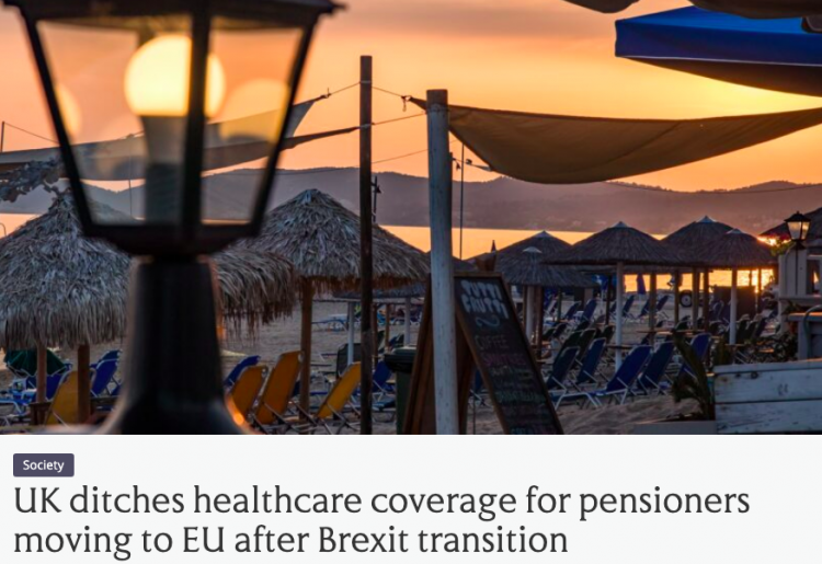 As reported in Europe Street News (click on the image above for the link) once the transition period is over on the 31st of December of this year UK pensioners will not be covered by healthcare in Spain if they move here permanently and become resident. And if you say this is fake news then just mull over the official paperwork supplied by the UK government here. (I'll wait for you to come back exhausted and depressed after reading all of that)