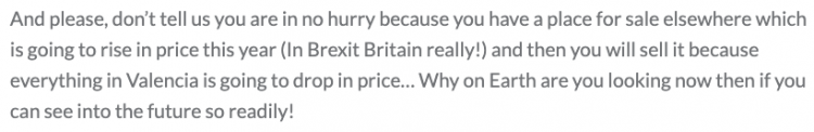 The best stuff sells fast. Once foreign buyers are easily able to get here the market is going to go even more completely mental. People have realized you only live once and they want that Place in the Sun now. Contact us of course but make sure to read the essentials here first https://www.valencia-property.com/new/essential-reading/