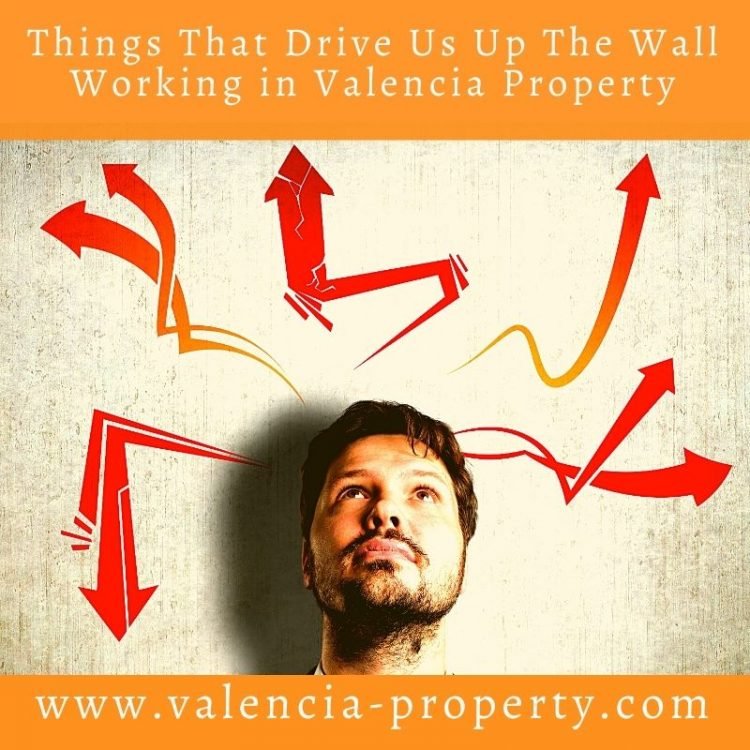 Now firstly, before reading this, don't get me wrong. We love what we do at Valencia Property. There is nothing more satisfying than finding the right property for our clients at a great price and helping them to complete and settle into Valencia. However, there are little things that frustrate us, maybe even irritate us and sometimes, yes... there are things that absolutely drive us up the wall. Today, we thought we would have a rant... just so you can have a laugh at our pain, our misfortune, our suffering. And yes, we know we are fortunate to be able to do what we do in such a beautiful place as Valencia and we are not really complaining...