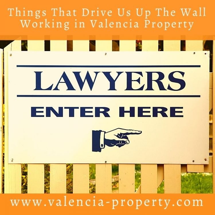 In order of dislikes, what we really hate are the lawyers who refuse to use whatsapp or any messaging app because their time is too valuable to spend messaging plebs like us (making communications, let's just say, less fluid), lawyers who are totally up themselves because they "always know better" even when they don't (and this is proved "Every. Single. Time"), lawyers that never answer their clients' questions or even acknowledge that the question has been asked, those who never admit they are wrong, (this is a major weakness), those who go fishing for clients on Facebook claiming they speak excellent English and have loads of experience when they don't... those who stick their oar in on things that have nothing to do with their job and make our life more difficult (Phone and alarm contracts anyone) and so many other things...