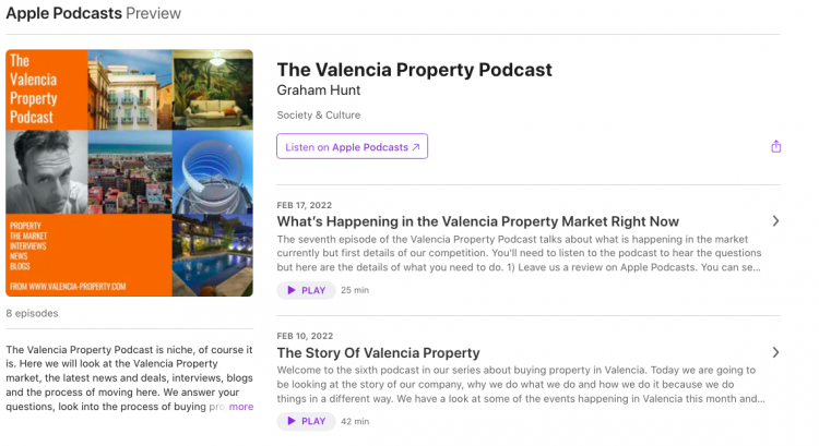 If you're interested in relocating to, or investing in property in Valencia, this is THE podcast. Podcast host and founder of Valencia Property, Graham Hunt, has 20 years knowledge and expertise in the Valencian property market, and this podcast is a reflection of that. Each episode focuses on a different theme such as the buying process, property modernisations, relocating to Valencia/Spain and visa requirements. Graham provides informative, frank and honest advice, insights, news and views into everything Valencian property. As someone who's looking to relocate to Valencia, it's a must-listen. Keep up the great work, Graham & team!