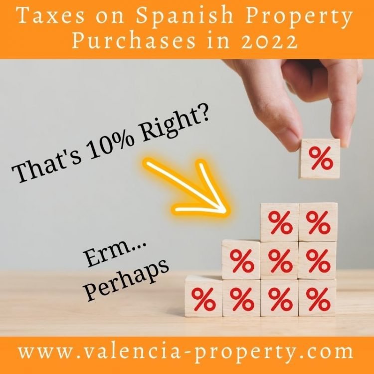 One client buying an apartment in Valencia has an agreed price of 125k. The reference value is 86k. And the tax therefore is based on the sale price. 12500 Euros or 10%. If the tax was based on the reference value then it would be 90% of 8600 as that is the calculation the tax office is using for reference values. However, you pay the higher of the two figures. In other words if the reference value is below the sale price you pay the 10% on the sale price of course.