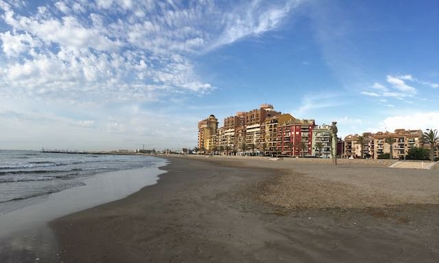Next. Not our favourite place. Around six kilometres to the north of Valencia fringed by the motorway and the beach and full of tower blocks almost guaranteeing some form of sea view but very, very quiet in the winter when most of the cafes close and then they ramp up the prices in the summer for mostly quick fried fish dishes to try and make a year's money in two or three months. A bit grim but if it's sea views you want then you get them here.