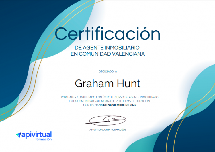The Valencian Government has put in place a requirement for all of those working in the Valencia Property market to have a new qualification in real estate and also to be part of the new register of agents offering property in Valencia. All of our team are currently working on this and will be newly qualified in the next few weeks and months. Yours truly did the supposedly 200 hour course in nine days while working too and passed with flying colours of course ;-). So very soon you will be able to ask to see our certificates, check out our insurance coverage and check us out on the Valencia regional government's register. This should give you even more confidence in what we offer you if the blog, the listings, the reviews and the openness didn't already.