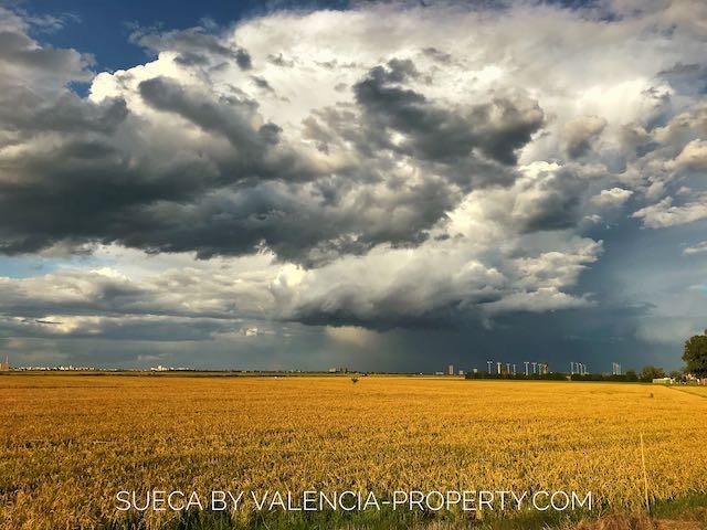 Sueca is a strange one. When you get to the south of the Albufera lake having gone past Perrelló and Perollenet (And yes, go past them and try not to look left at the 1970s carbuncles in a strip along the coast) you get to a few places such as Mareny de Barraquetes, Mareny Blau and Bega del Mar where you can get peace and quiet, even during the summer months in certain areas, a huge long strip of golden sands and decent value properties. Essentially this is the area of Sueca. From the town of Sueca to the beaches you have a flat area which lends itself to great photographs with big skies and little fluffy clouds as can be seen in the images below and the town of Sueca itself is rather fetching and even has a chocolate museum. Valencia is reachable by train from Sueca past the Albufera and it's a decent train ride or a leisurely drive.