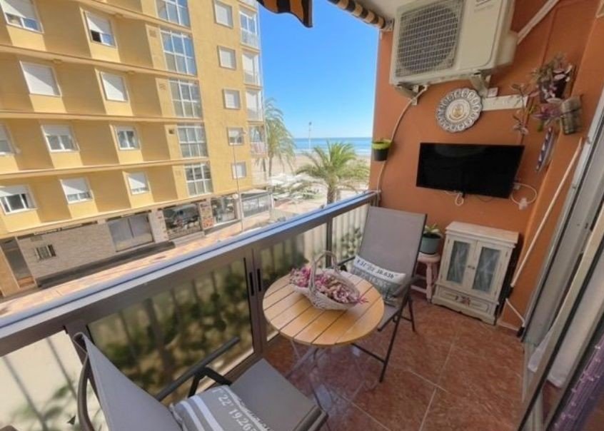 Fortunately no brass bands on the prom here, as this apartment is right on the beach, literally a stones throw from the balcony. A nice quiet street, very few bars or cafes, so peaceful even during the busy summer months. Only 66m2 but 2 double bedrooms, proper kitchen and a comfortable living area, its great for holiday breaks and/or holiday rental for a bit of income. Perfect condition and comes as seen, furnished.