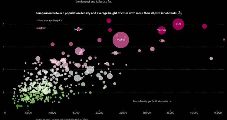 65% of people in Spain live in apartments which worldwide is second only to South Korea, with a quite eye-watering 74% living in flats there. This compares with the EU average of 41%, the USA with 21% and just 15% in the UK for example. The reason is because of how urban development happened in Spain and to understand why there was a fascinating article released last week in El Diario. You can read it in English here and it is truly fascinating not to mention an excellent way to illustrate data.
