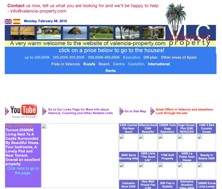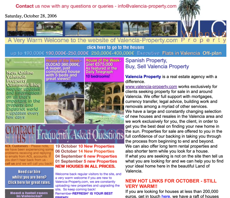 The property boom in Valencia and Spain was in full swing by this time and Valencia Property was becoming one of the best known agencies in the region regularly featuring in the international press, though mostly in the UK, and growing as an agency. By 2006 the website was developing bit by bit but still had the webmaster problem and the problem he brought with his business partner too (long story). New properties were still uploaded in batches and depended on the time available of the webmaster (he made sure never to have much or rather he had other priorities) meaning places had often sold by the time they made it onto the website.