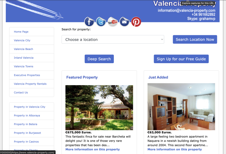 Within a few months they had their new home on the Portacoeli estate in Serra. However working with people I knew and who came to me was never going to work long term though we did start working with a lot of teachers. Two years later it was time to put together a website as there were few around and it was a new scene. The first appearance of Valencia Property on the Wayback machine is in November of 2002.