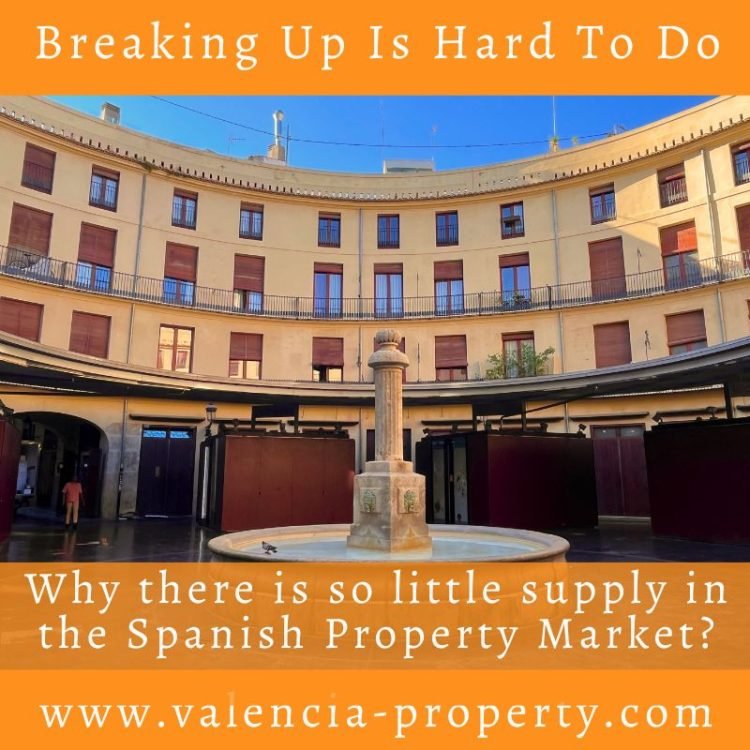 The last few years have seen the stock of Spanish property available to buy or rent reduce dramatically and as a result prices have risen equally dramatically. Today we are going to look at why there are so few properties available in Spain concentrating just on sales. Rentals will be for another day. This is true not only in the most in demand areas but also in small towns and villages throughout the country even in the places known as "La España Vacia" (Empty Spain). Our post today examines the many reasons why breaking up is hard to do and why there is so little supply in the Spanish property market.