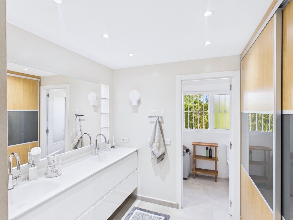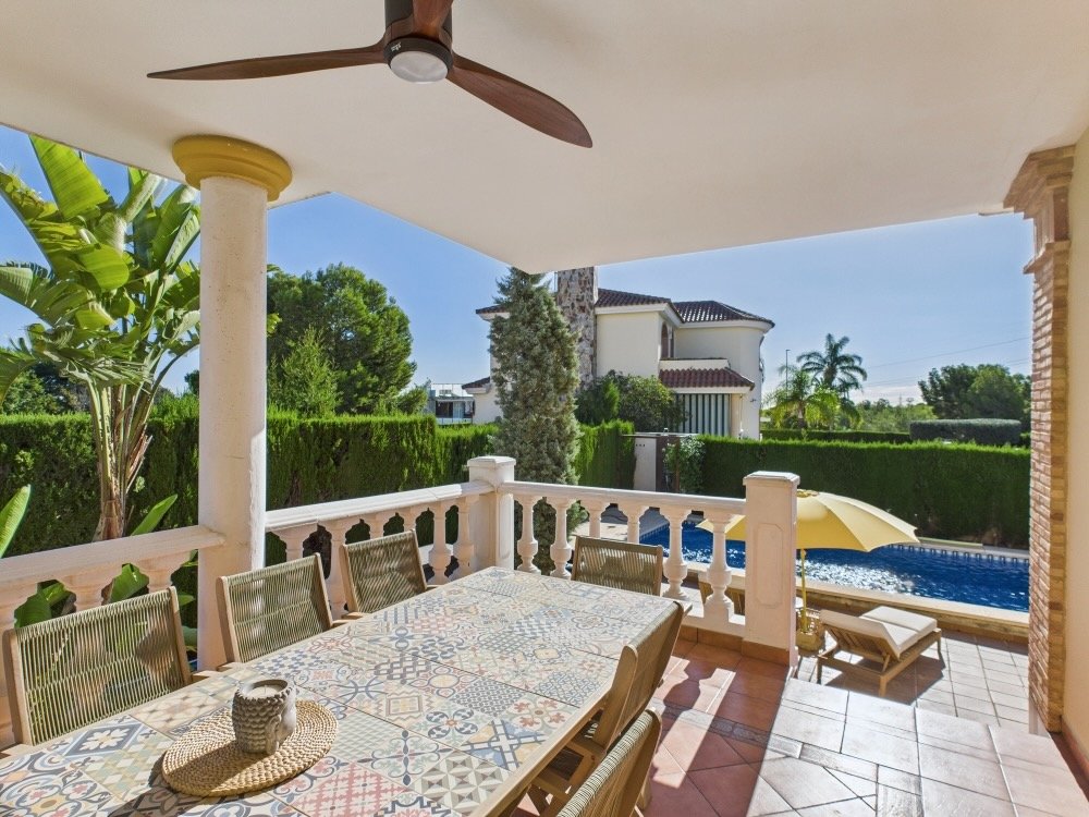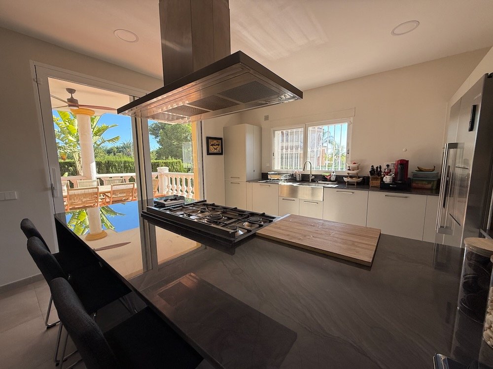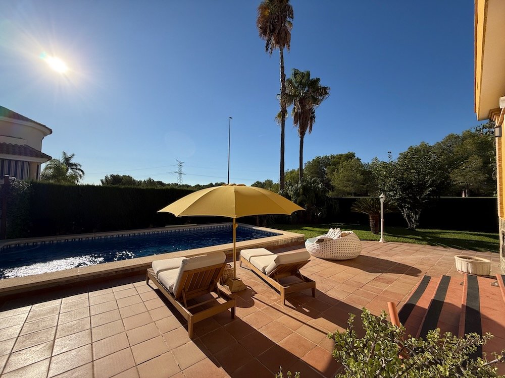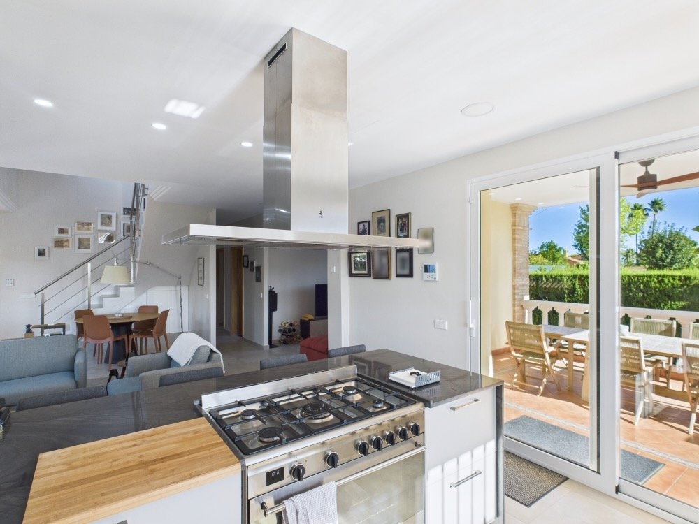 Howevers, transitional in house design refers to when you keep the best traditional bits, and include great modern features too. Like this house in Colinas de San Antonio, which has a classic façade and beautiful pool and gardens, lots of kerb-appeal , but the interior has been completely renovated and modernised. It is located on the edge of the urbanisation, and directly across the road is the start of the La Vallesa parkland area, which forms part of the huge Turia Natural Park. Easy access to the CV35 to the city, and a very short stroll (10 minutes) to a couple of large supermarkets. Even the metro is close, if you don’t mind a 20 minute walk.